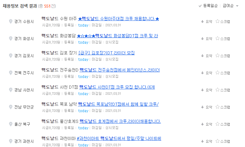 맥도날드 알바 공고가 올라와있는지 확인을 해야겠죠?